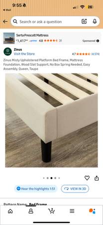 Zinus misty upholstered queen bedframe