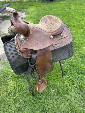 Simco 15.5 inch Western Saddle with Silver Chrome, Saddle Pad - $150 (South Lyon)